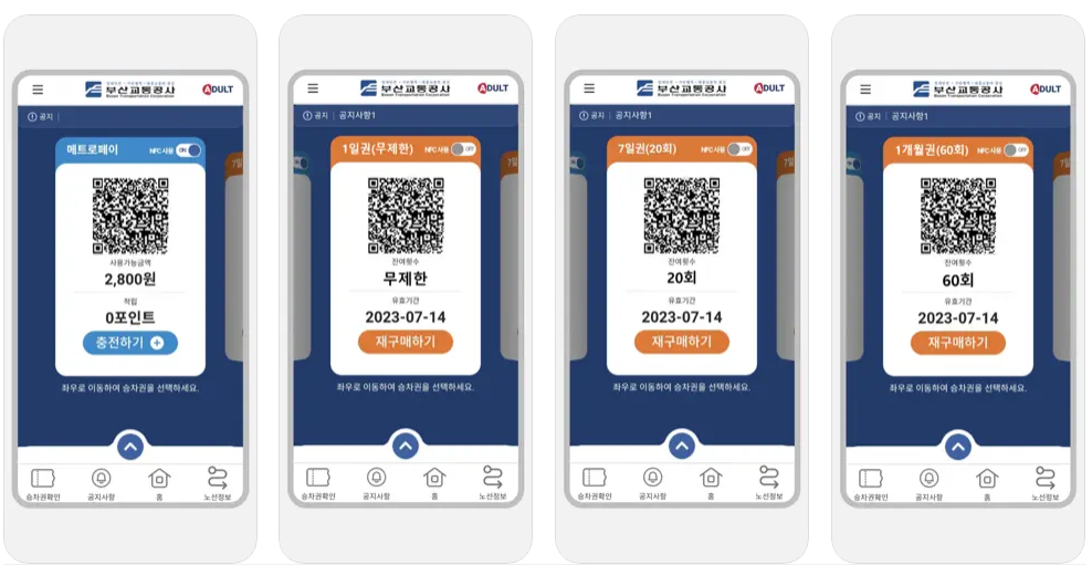 2. 정기권(1일권, 3일권, 1개월권) 충전 및 사용