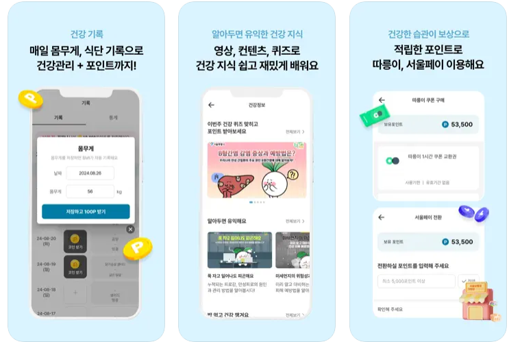 - 모은 포인트 를 서울페이 로 전환하여, 서울 내 가맹점(편의점, 병원, 약국, 서점 등)에서 무료로 이용할 수 있어요.