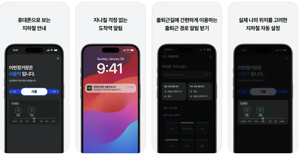 타고 계신 지하철이 어느역을 지나가고 있는지 알림으로 알려드려요.