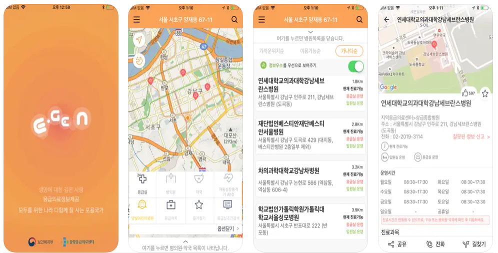 - 현재 위치를 기준으로 가장 가까운 응급의료기관을 검색할 수 있어 시간을 절약할 수 있습니다.