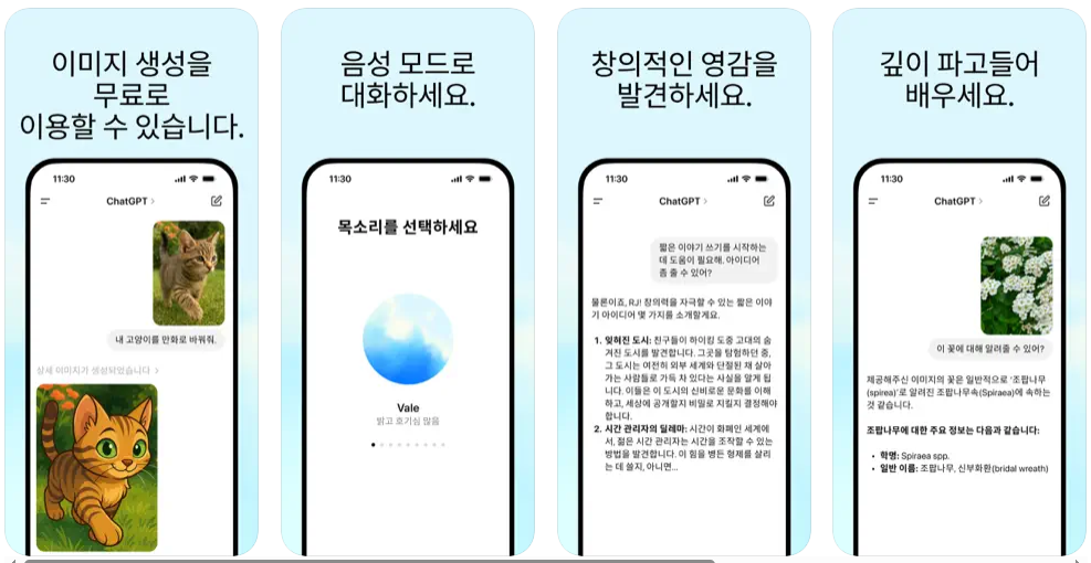무료 앱으로 OpenAI가 선사하는 최신 모델과 성능을 만끽하세요. 가장 스마트한 최첨단 모델, GPT-4o도 함께 말이죠.