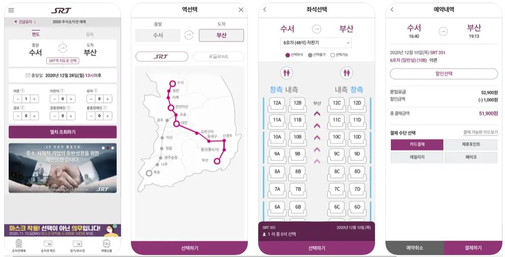 3.SRT - 수서고속철도 앱 주요기능