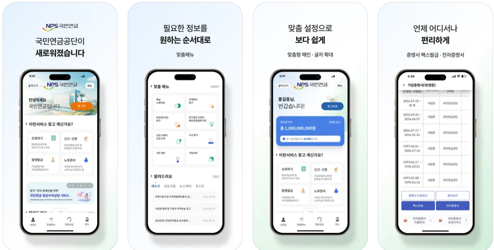 - 내 연금 알아보기, 노후준비 종합 진단 등 6종의 서비스