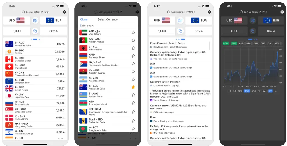 세계 통화 (200+), 라이브 환율, 즐겨찾기, 오프라인 모드, 그래프 등