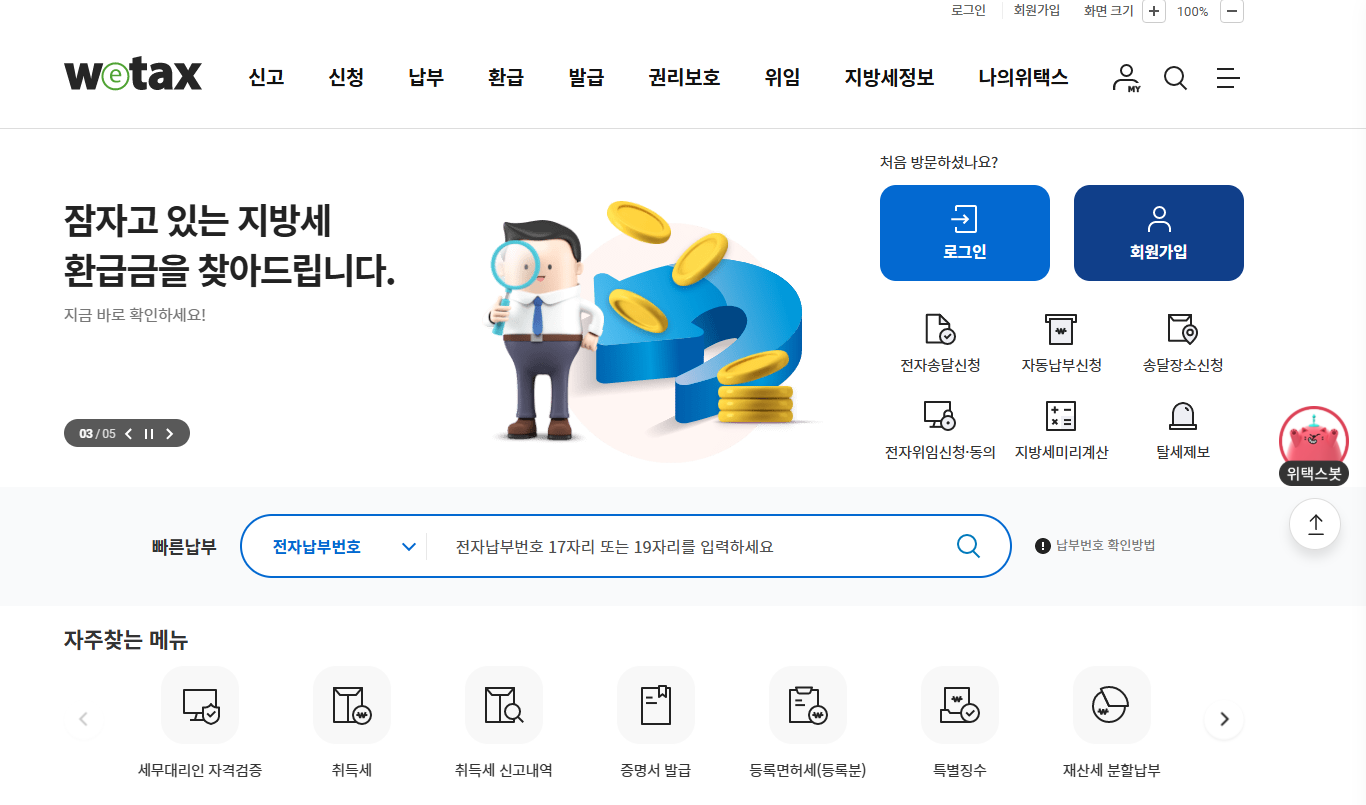 - 기타 지방세입 관련 정보 등의 서비스를 이용할 수 있습니다.